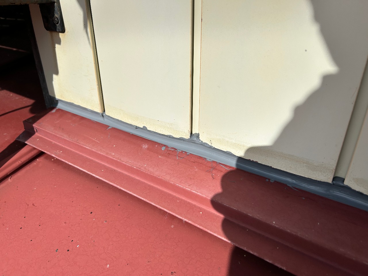 徹底したケレン(下地調整): トタン部分の錆や古い塗膜を丁寧に落とし、シーリングがガッチリ密着するように下地を作ります。